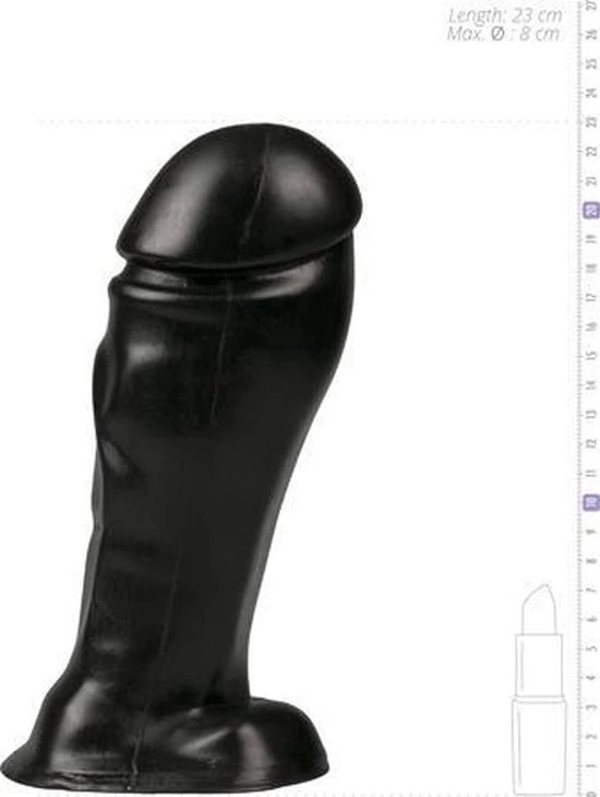 Deze All Black dildo met zijn mooie stevige eikel en lange schacht wordt staande gehouden door zijn 2 kleine balzakken. Leuk speeltje om naar te kijken en zeker ook uit te proberen door de gevorderden ! Glijmiddelen gebaseerd op zowel water als silliconen kunnen hierbij gebruikt worden. Het is belangrijk de dildo goed te reinigen na gebruik. Voor het makkelijker inbrengen en het reinigen van de dildo adviseren wij onder andere de Kiotos glijmiddelen en Toycleaner. Elk speeltje is individueel strak verpakt in een transparante plastic beschermhoes. Lengte : 22 cm / Diameter: 8 cm