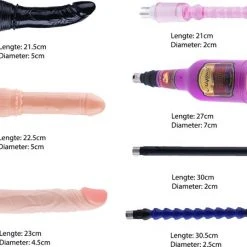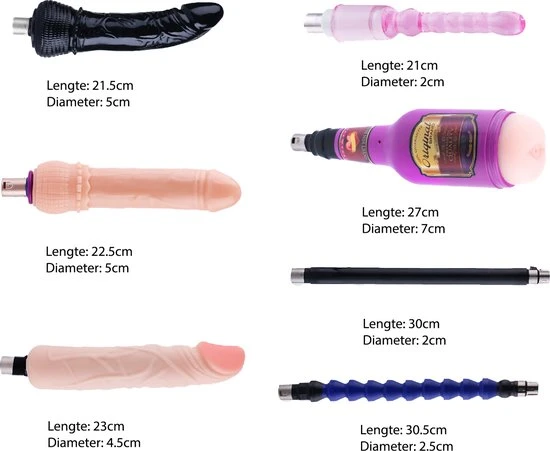 Bij de neukmachine zitten 7 opzetstukken meegeleverd. De machine beschikt over een 3XLR aansluiting, waarmee je de dildo?s en accessoires eenvoudig en snel kunt verwisselen. Zo kun je iedere keer weer genieten van een andere beleving.