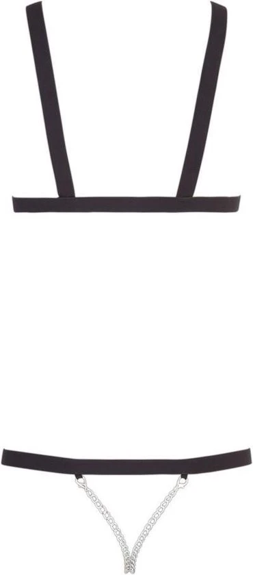 U kunt genieten van warme bondage games met deze zwarte band lichaam! Het is gemaakt van met stof beklede elastische bandjes die noppen op hen. De 2 verwijderbare metalen kettingen gaan over het kruis dat sexy final touch toevoegen outfit,ΓΒΆ