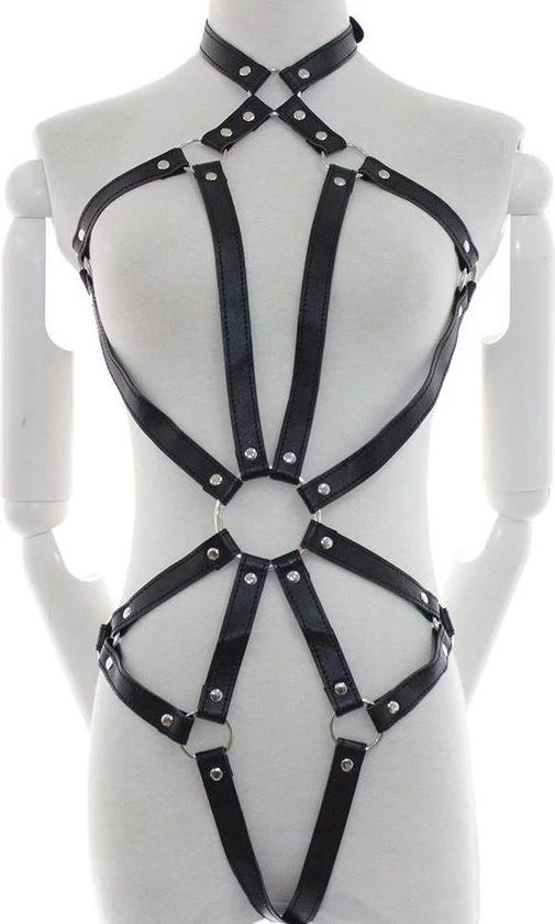 Sexy riemen body gemaakt van zwart imitatieleer. In deze verleidelijke body laat je zien hoe wild je kan zijn.
