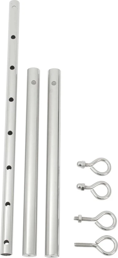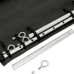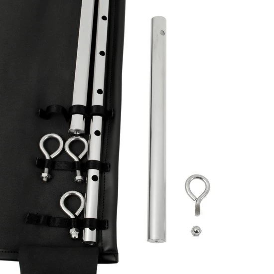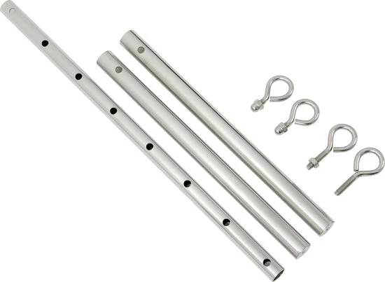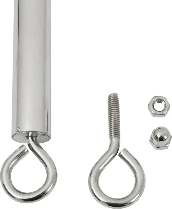 Op de hoeken, en in het midden heeft deze spreader bar ronde ogen zitten. Hieraan kan je makkelijk en snel karabijnhaken bevestigen.