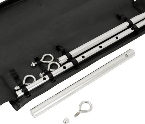 De spreidstang is verstelbaar van 50 cm tot 80 cm. Een voordeel van deze solide spreidstang is dat hij uit elkaar kan worden gehaald. Het langste gedeelte is dan 39 cm. Na gebruik pak je hem eenvoudig in. De opberghoes wordt meegeleverd. Doordat het dan een klein pakketje is kan je hem na gebruik makkelijk en discreet opbergen.
