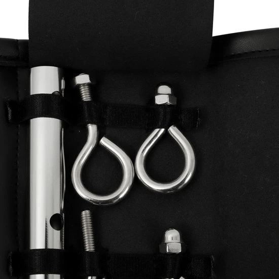 Stevige metalen verstelbare spreidstang met vier bevestigingspunten. Gebruik ze met je favoriete boeien. Probeer alle posities uit en laat je fantasie het werk doen. De spreidstang is sterk genoeg om een stribbelende onderdaan in bedwang te houden.