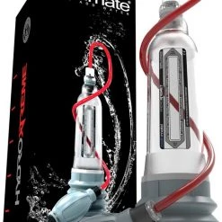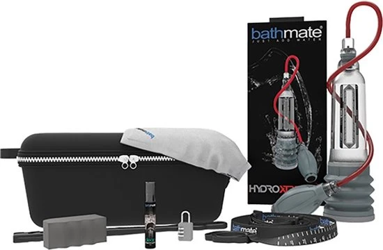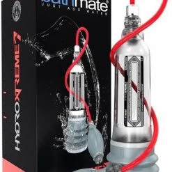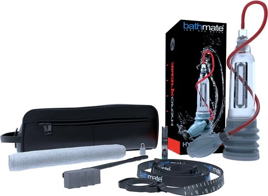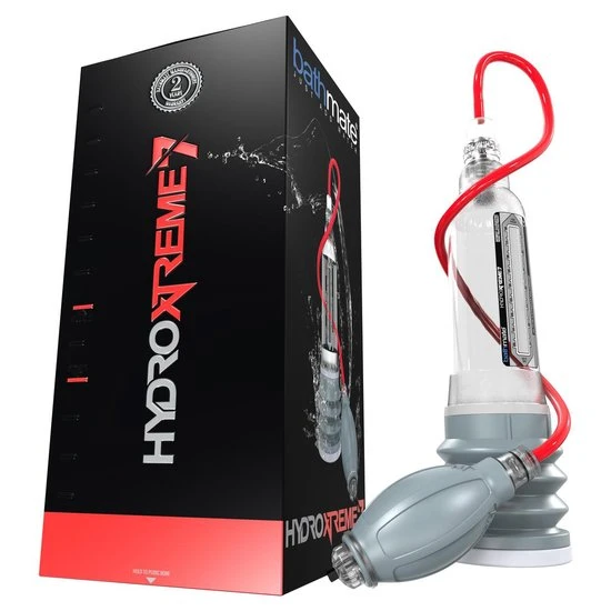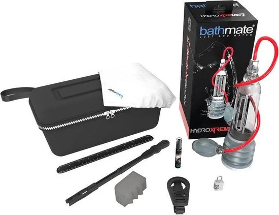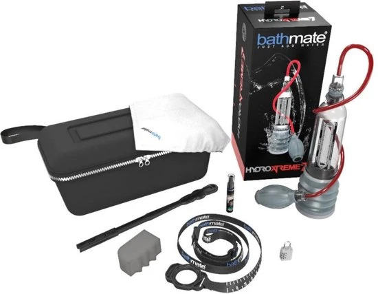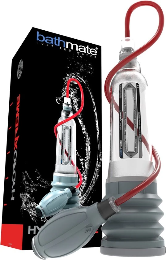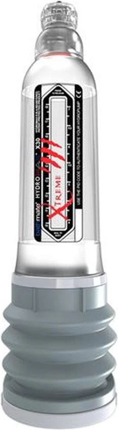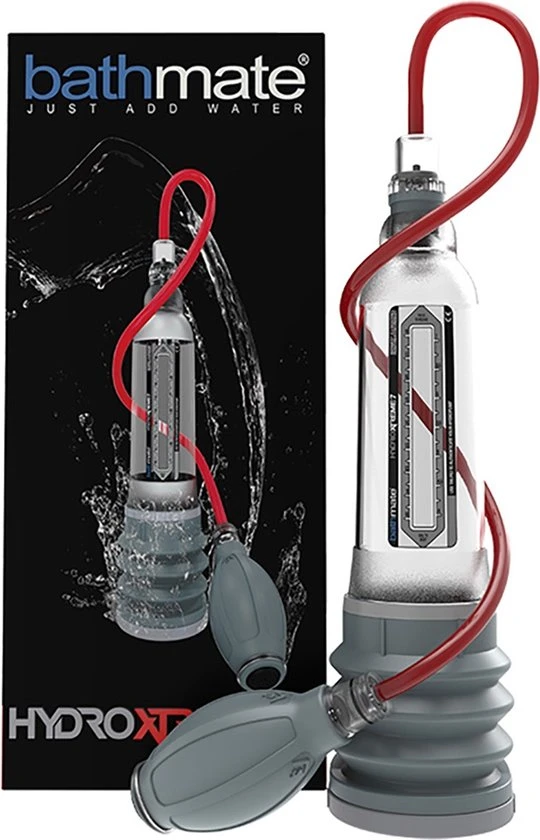 De Hydromax HydroXtreme 7 is een zeer luxe penispomp. De pomp wordt gebruikt onder en met water. Door de pomp vol te laten lopen, onstaat er een aangename vacu?msensatie. De penis wordt gelijkmatig vacu?m gezogen doordat het water uit de pomp spuit. De HydroXtreme 7 wordt om de penis, tegen de buik en heupen geplaatst. Door de pomp tegen het lichaam te duwen, kan er water uit de sleeve. De HydroXtreme wordt geleverd met vele accessoires zoals Pjur glijmiddel, een bewaaretui, een liniaal en een handdoekje.
