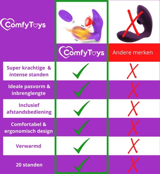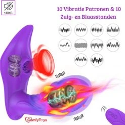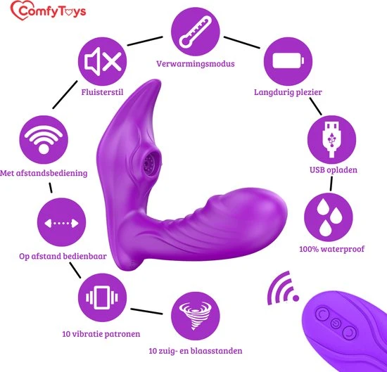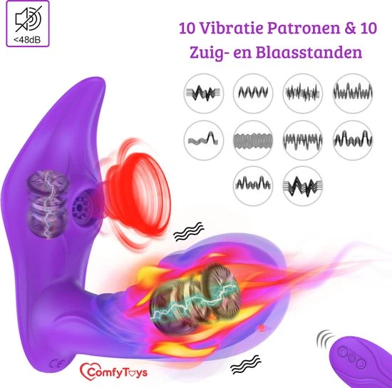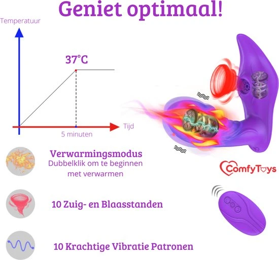 Veel vrouwen vinden het enorm lastig om een orgasme te krijgen. De reden kan zijn dat sommige vrouwen moeite hebben om te ontspannen wat noodzakelijk is om tot een orgasme te komen. Dit kan erg frustrerend zijn. Een vibrator helpt hierbij om in priv?tijd ultiem te genieten. Echter, de ene vibrator is de andere niet. Jij bent dus op zoek naar de allerbeste en allerlekkerste vibrator voor je eigen genot die jou optimaal prikkelt en stimuleert. Zo leer jij je eigen lichaam het beste kennen en kan je pieken tot geoptimaliseerde en intense orgasmes. De vibrator van ComfyToys is dan perfect geschikt voor jou! Onze multifunctionele vibrator is het allernieuwste model en heeft een verbeterde vibratie en luchtdruk techniek. De motoren van de vibrator zijn geoptimaliseerd met als gevolg een super krachtige trillingsintensiteit. Daarnaast gebruikt onze vibrator de nieuwste techniek voor clitoris stimulatie, namelijk luchtdruk.