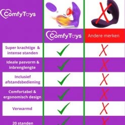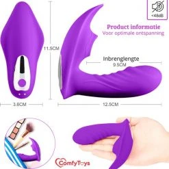 Op zoek naar het spannendste en leukste speeltje voor de allerbeste orgasmes en optimaal plezier? Maak dan vooral kennis met deze luxe 2 in 1 vibrator. De vibrator van ComfyToys is speciaal gemaakt om de clitoris en de G-spot te stimuleren voor een onvergetelijke ervaring. De vibrator komt met een afstandsbediening zodat jij of je partner de controle kan nemen over de intensiteit. Beleef nu de sensatie en genot die jij verdient!