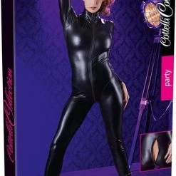 In deze wetlook catsuit ben jij altijd de baas. De catsuit is gemaakt van rekbaar materiaal dat subtiel glanst. Die zorgt voor een sexy, uitdagende en stoere look die niemand kan weerstaan. Het gesloten model is voorzien van een col en een extra lange rits. Hiermee bepaal je zelf hoeveel je van je lichaam laat zien. De rits kan helemaal open, waardoor ook het kruis en de billen toegankelijk zijn.