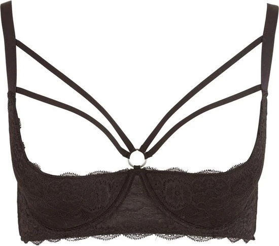 Coupon π₯ Cottelli Collection Lingerie Cottelli Plus Size Kanten Riem Top Beha Met Licht Gevoerde Open Cups En Stijlvolle Buste Ring Maat 90D Zwart π