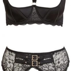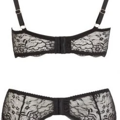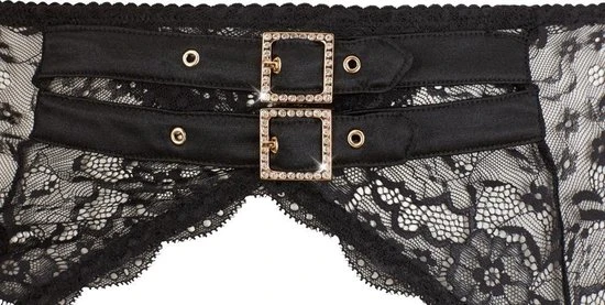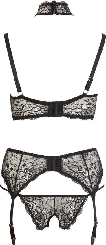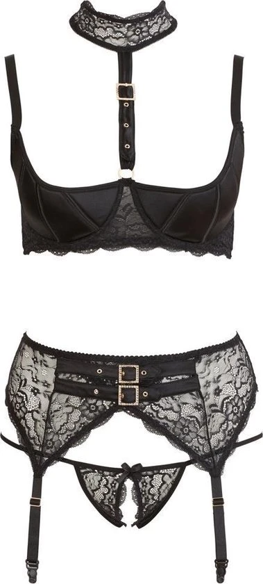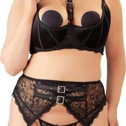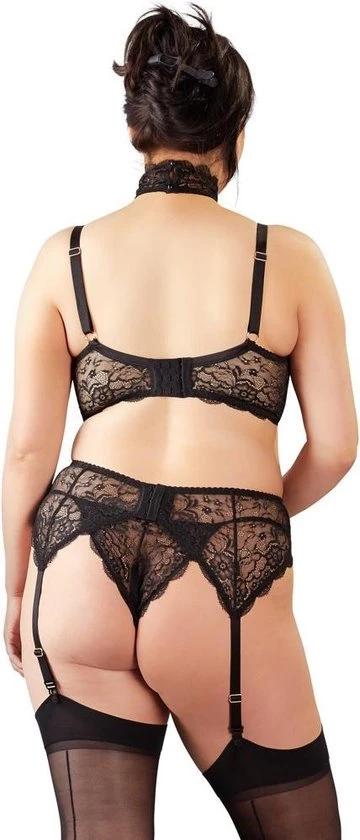 Uitgang β Cottelli Plus Size – Kanten Erotische Jarretel Lingerie Set Met Choker Halternek En Stijlvolle Riemen Open Cups En String – Maat 95D/2XL – Zwart π