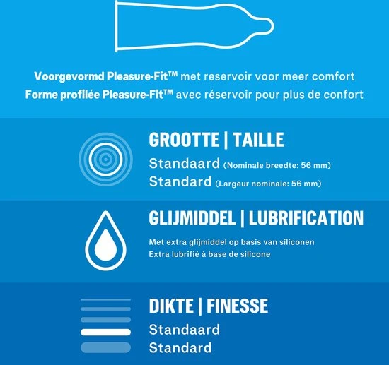VEILIGHEIDSVOORSCHRIFTEN: Lees de gebruiksaanwijzing aan de binnenkant van de verpakking aandachtig door, vooral bij gebruik van het condoom voor anale of orale seks. Geen enkel voorbehoedsmiddel biedt u een 100%betrouwbare bescherming tegen zwangerschap, hiv (aids) of andere seksueel overdraagbare aandoeningen. Condooms kunnen verstikkingsgevaar opleveren. Buiten bereik van kinderen bewaren.