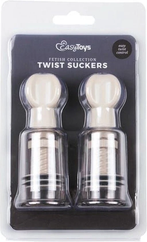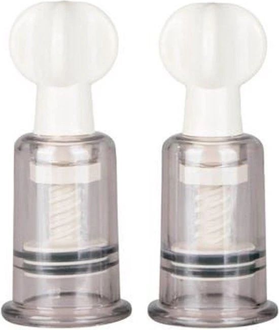 Twee kleine tepelzuigers uit de EasyToys Fetisch Collection. Deze tepelzuigerset is speciaal gemaakt om je tepels fantastisch en keihard te maken! Bovendien verhogen ze de gevoeligheid van de tepels. Gemakkelijk te bedienen met de draaiknop. De sterke zuigers zuigen zich vast om de tepels en blijven stevig zitten. Beleef veel plezier met deze stevige tepelzuigers. De zuigers zijn niet alleen op de tepels maar op elke gewenst lichaamsdeel te gebruiken.
