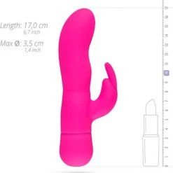 Deze leuke rabbit vibrator uit de EasyToys collectie staat voor grenzeloos genot. De roze vibrator geeft het klassieke model van de tarzan vibrator een moderne twist met zijn volledig siliconen buitenkant. De sex toy heeft een zachte, gebogen top voor G-spot stimulatie en een flexibele clitorisstimulator. Hierdoor ga jij nóg sneller richting jouw orgasme. De vibrerende oortjes stimuleren de clitoris gericht met 3 snelheden en 7 vibratiesnelheden. Druk op de knop en ontdek je favoriete stand!