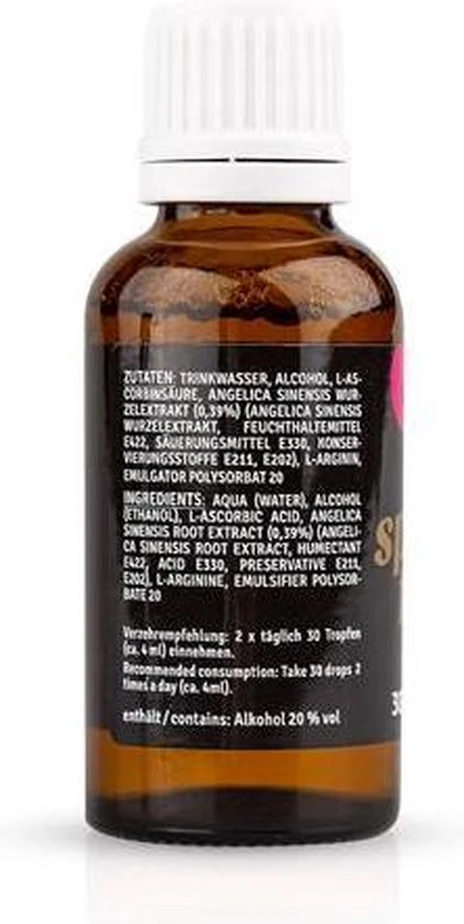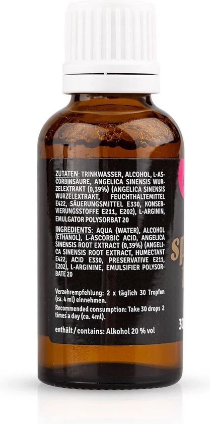 Lustopwekker voor vrouwen. De oude, vertrouwde Spaanse Vlieg met toevoeging van ingredi??nten die hun werking op de oestrogenen en endorfine bewezen hebben. Door deze uitgekiende samenstelling ervaren vrouwen een tijdelijke roes. En ze worden overvallen door begeerte. Niets staat een opwindende vrijpartij nu nog in de weg.
