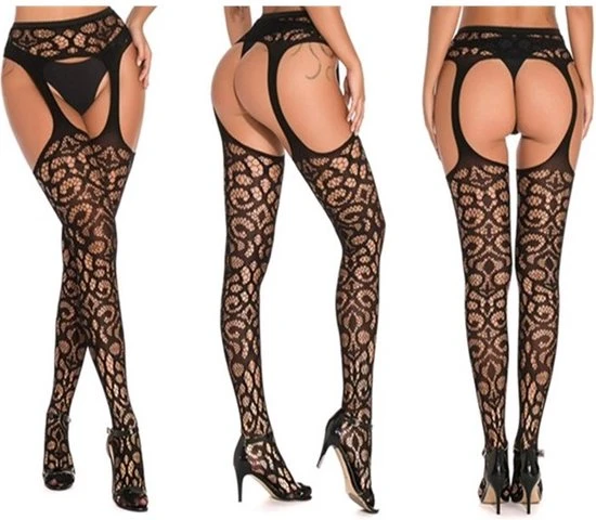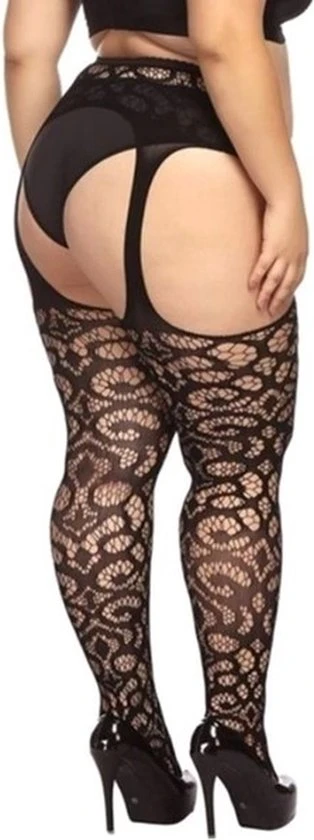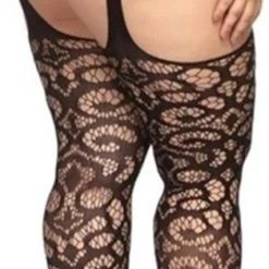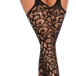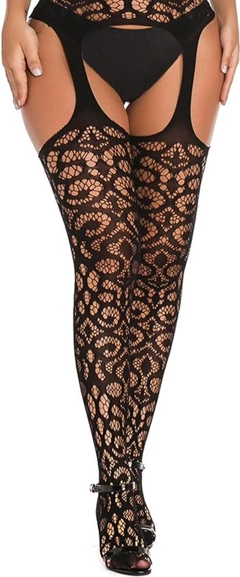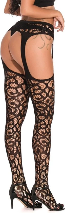 Voel je verleidelijk van je tenen tot heupen in deze sexy luxe zwart kanten jarretel panty. Door het bloemetjess motief geeft de jarretel panty een sexy, onweerstaanbare uitstraling. Geniet van luxe en comfort in ??n dankzij de rekbare stof.