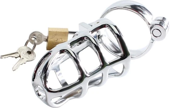 Vind je het fijn om de controle over het geslachtsdeel van je sub te hebben? Of hebben jij en je partner zin in een kinky avond in de slaapkamer? Een kuisheidskooi met slotje is dan een onmisbaar speeltje. Deze peniskooi van metaal omhult het mannelijke geslacht volledig en zorgt daardoor voor beperkingen. Wanneer je sub of partner de chastity device draagt, is het niet meer mogelijk om te masturberen, te penetreren of om een erectie te krijgen. Op geen enkele manier kan de penis worden aangeraakt. De kuisheidskooi met slotje is een opwindend accessoire waarmee de dominant of de vrouwelijke partner de totale macht heeft. Door het hangslot is het voor de drager onmogelijk om de peniskooi af te doen. De dominant of partner is in het bezit van de sleutel en bepaalt wanneer de kooi af mag.