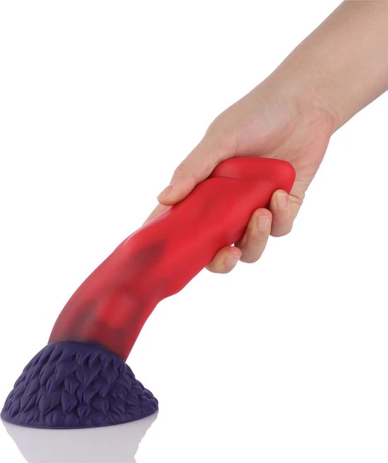 Deze flexibele fantasy zuignap dildo brengt je ultiem genot. Dit seksspeeltje is 21 cm lang en 5 centimeter dik, de inbrenglengte is 17 cm. De dildo is extreem flexibel, in combinatie met de oersterke zuignap is elk standje mogelijk. De unieke textuur en taps toelopende eikel hebben maar één doel. Een ultiem orgasme! De dildo is vervaardigd uit 100% premium siliconen en is zowel vaginaal en anaal te gebruiken. De dildo is waterproof en voorzien van een sterke zuignap waardoor je de dildo overal kunt gebruiken. Met een zuignap adapter kun je deze dildo op onze sex machines aansluiten.