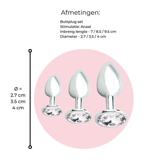 De buttplugset bestaat uit drie verschillende maten. Dit zorgt ervoor dat je de mogelijkheid hebt om klein te beginnen, het op te bouwen en te wennen om zo optimaal te genieten. De buttplugs zijn gemakkelijk in te brengen door de druppelvorm.