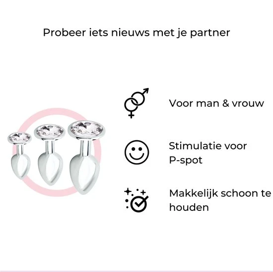 De buttplugs hebben veel meer voordelen. De set bestaat uit drie maten waardoor je klein kan beginnen en dit kan opbouwen, om zo de perfecte maat voor jou te vinden! Er zit voor iedereen wat bij en voor zowel mannen als vrouwen kan het orgasme versterkt worden. Tijdens het orgasme van een man trekt de kringspier samen, bij het gebruik van een buttplug zal het spier spasmen veel intenser aanvoelen. Bij een vrouw zorgt het ervoor dat er minder ruimte in de bekken overblijft. De vagina wordt strakker en dit kan voor beiden erg fijn aanvoelen.