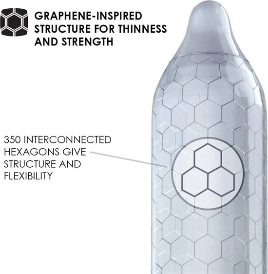 Individuele cellen: het netwerk van cellen doen geen concessies. Met een dikte van slechts 0.045 – 0.055 mm is HEX een van de dunste condooms op de markt.