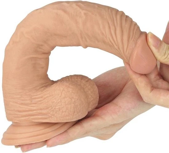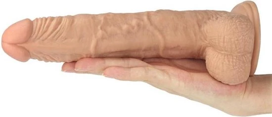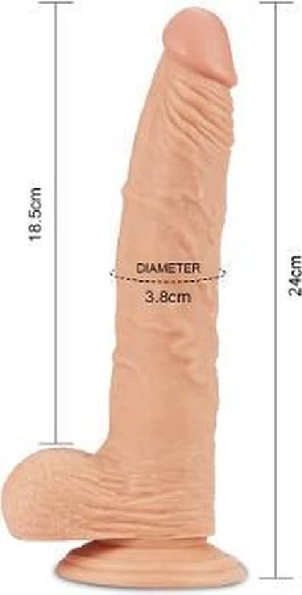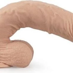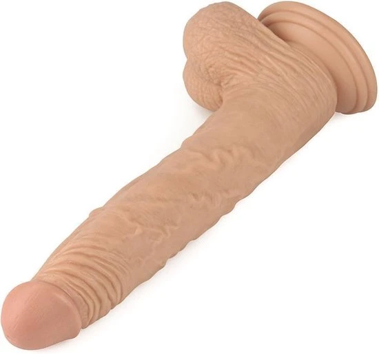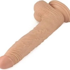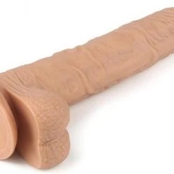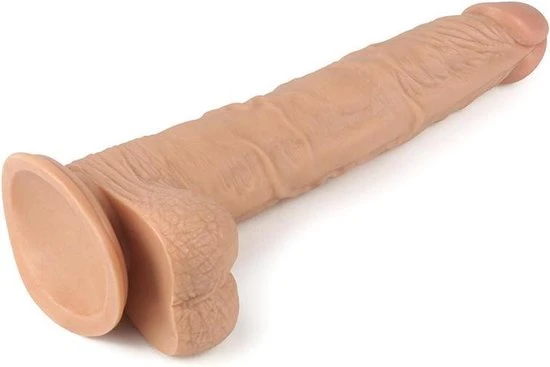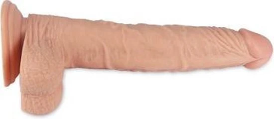 Bijna niet van een echte penis te onderscheiden deze dildo van 24 cm met zuignap. Groot model met ballen en aders over de schacht.