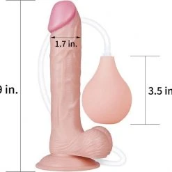 It is realistic, effective, and very easy to use. It features a large, soft bulb perfect for squeezing, making it an absolutely essential item for fans of vaginal and anal sex. Its strong suction cup allows you to place it on almost any flat surface and to use it with a harness. Fill the knob with warm water to clean it and use diluted water-based lubricant. Don’t use any thick liquid that could clog the tube.