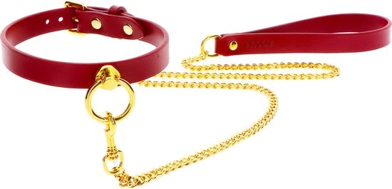 Ontdek je kinky kant! Gebruik de O-RING COLLAR & CHAIN LEASH in de slaapkamer, hotelkamer, speelfeestje of kinky club. Laat je vertrouwde dominant je leiden. De gebruiksvriendelijke O-Ring Halsband & Ketting zijn gemaakt van hoogwaardige materialen en zijn perfect voor een goede BDSM-sessie. Of draag het als een sexy fashion statement. Maak je klaar voor een luxe bondage-ervaring met de vegan lederen O-ring halsband en ketting.