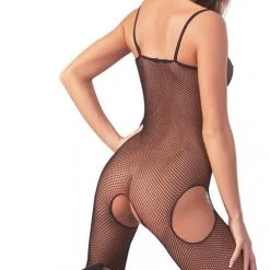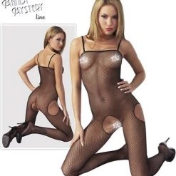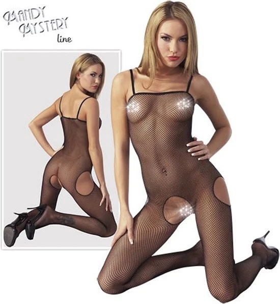 Deze sexy, transparante net Catsuit ziet er niet alleen heel verleidelijk uit, maar heeft ook nog leuke details aan de zijkant van uw heupen, verder heeft het een Open Kruis en smalle schouderbandjes.