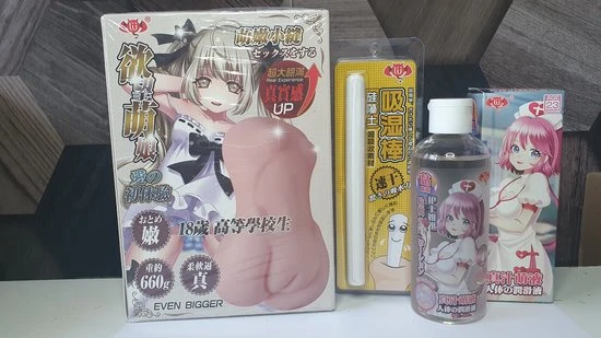 De hentai sexpop met opblazende waifu komt met lube, droog stick, heating stick en opblazende anime girl.