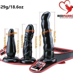Zeer unieke strap-on waarbij de gebruiker zelf ook geniet van een dubbele penetratie. Op de afbeeldingen in de advertentie ziet u de afmetingen die bij de 3 dildo’s horen. De strap-on, die uniek is op de Nederlandse markt, is volledig verstelbaar doormiddel van de gespsluiting van de lederen riem die er aan verbonden in. Hoge kwaliteitsleer met een fijne afwerking voor de huid. De penissen hebben verschillende vormen en diktes om zo het genot op verschillende manieren te stimuleren. Erg leuk om je seksleven naar nieuwe hoogtepunten te brengen, en uiteraard om cadeau te doen aan je date of partner!
