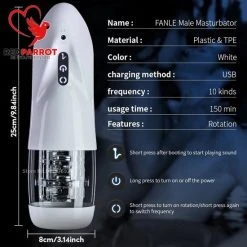 Deze masturbator is van absolute topkwaliteit. Makkelijk op te laden via bijgelverde USB-kabel. Verwarmd. Waterdicht. 10 verschillende standen. Inclusief aansluiting voor headset voor ultiem genot. 150 minuten te gebruiken na opladen. 25CM bij 8CM.