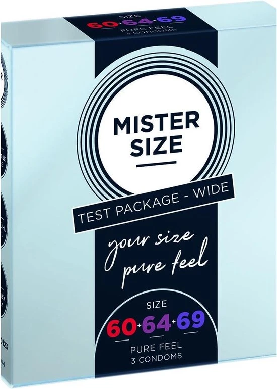 MISTER SIZE – pure feel 60mm, 64mm, 69mm (3x3pieces testpack), for the curious who would like to try out new condom sizes