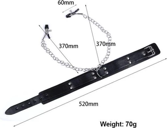 | Verpakkingsinhoud | 1, Choker, halsband, 1, setje, tepelklemmen, aan, ketting |