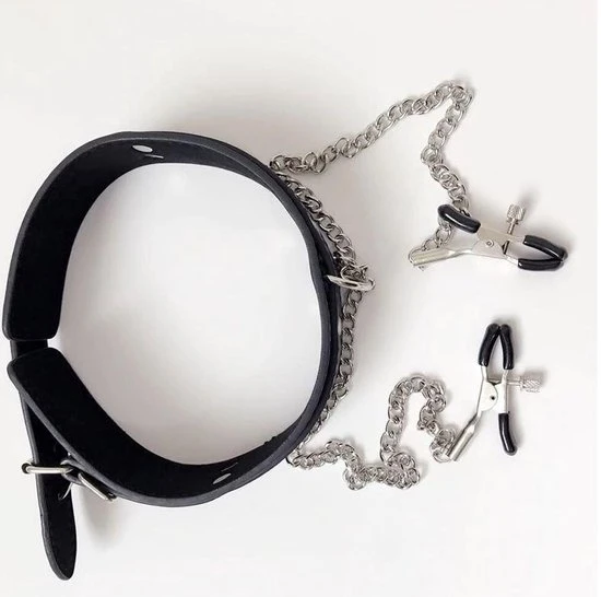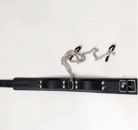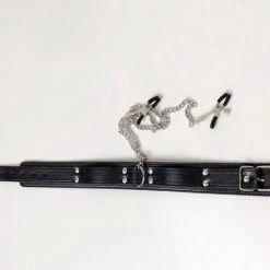 Mooie kwaliteit PU lederen halsband choker met tepelklemmetjes