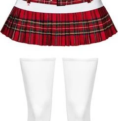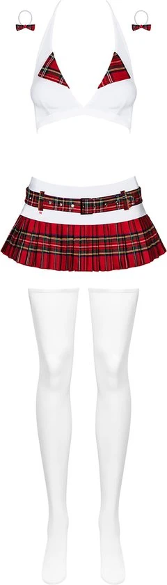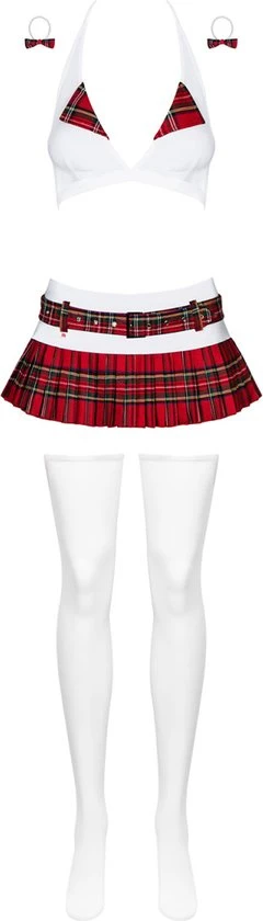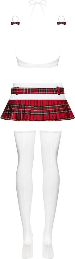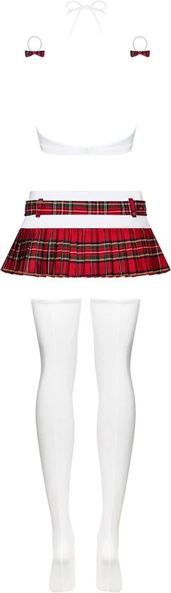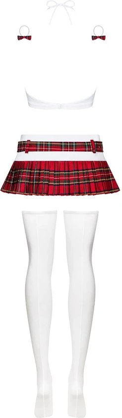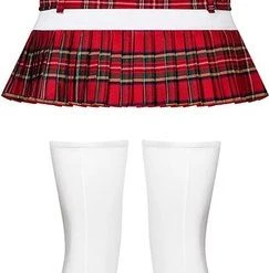 – top, rok, sexy string, 2 haarbanden gedecoreerd met bogen en witte kousen