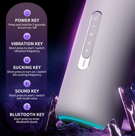 de masturbator is zowel met knoppen op het toestel als via de bluetooth app te bedienen.