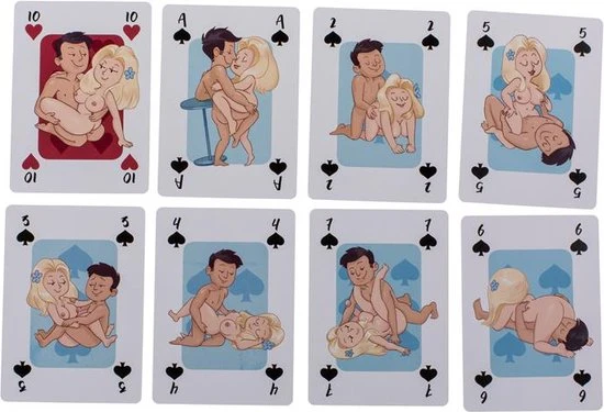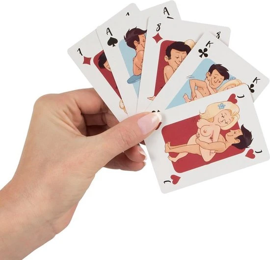 kaartspel met 54 kleurrijke kaarten die een brutale komische paar in verschillende standjes uit de Kama Sutra verbeelden. Inspireert en stimuleert om te proberen hen voor uzelf!
