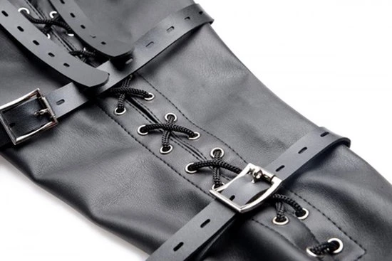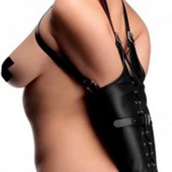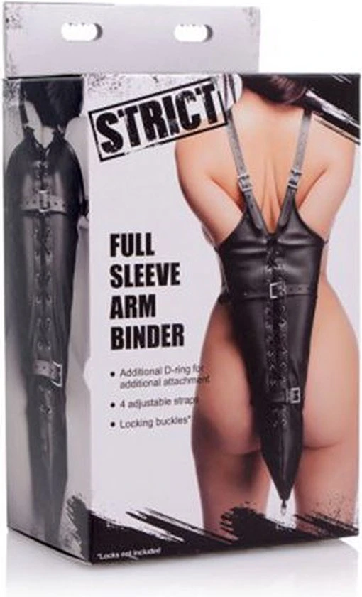 Bindt je partners armen achter de rug om hem of haar volledig te beperken voor jouw plezier! Deze volledige mouw is een uniek stuk bondage-uitrusting dat uw sc?ne effectief naar het volgende niveau brengt. Zet je playmate’s armen in de strakke, aantrekkelijke mouw, bevestig de veters, en pas alle vier de riemen aan op een strakheid die hen comfortabel vasthoud.. als dat is wat je wilt! Met vergrendelende gespen kun je jouw macht vergroten en ervoor zorgen dat er geen hoop meer is om te ontsnappen. Een D-ring aan de onderkant geeft je zelfs mogelijkheid om bijvoorbeeld BDSM-speeltjes te bevestigen. Vind jouw weg met het kwetsbare lichaam van je partner terwijl ze genieten van pijn en plezier.
