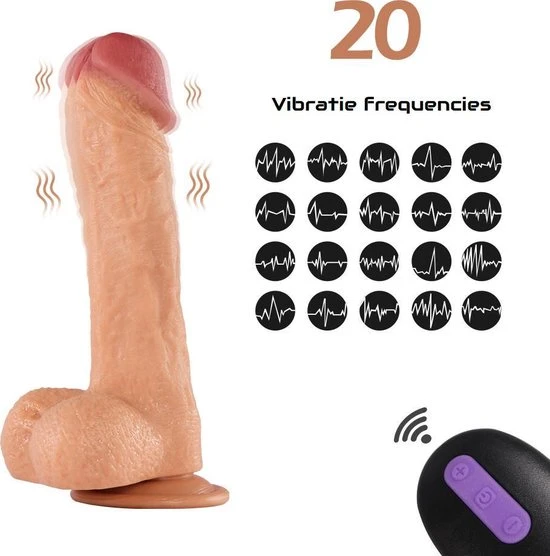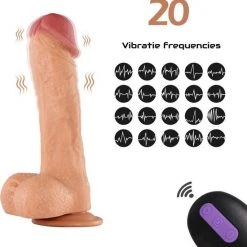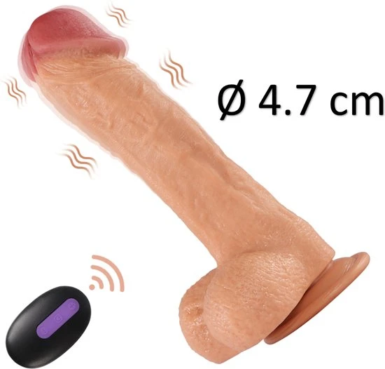 TipsToys komt nu met de nieuwste dikkere sex toy variant Dildo’s met vibratie. Deze trillende vibrator zal de meeste vrouwen achterover doen slaan wanneer ze deze levensechte grote dildo met een diameter van ,maar liefst 4.7 cm aan het werk zien. Deze mannelijke goed gevormde penis met een 18 cm inbrenglengte is een genot voor de vrouw. Onder de douche of in de keuken, overal kun je deze genots dildo bevestigen. Laat de vibratie met 20 verschillende frequenties verder zijn werk doen. Tevens beschikt deze dildo over een afstandsbediening, dit maakt het speeltje nog spannender.