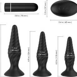 Deze set bevat 3 formaten buttplugs waardoor deze voor zowel beginners als gevorderden geschikt is. Wissel eenvoudig de vibrerende bullet tussen de 3 formaten buttplugs. Zo kun je klein beginnen en steeds groter gaan. De vibraties maken het inbrengen van de buttplugs nog aangenamer! Ook zonder de vibratie bullet zijn de buttplugs te gebruiken.