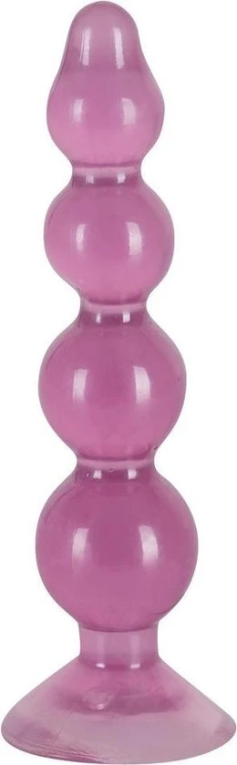 Met deze anale beads bent u verzekerd van een spannende en gevulde ervaring. Deze vier ballen zorgen geleidelijk voor een goed gevuld gevoel met meerdere stimulatie momenten in een druppelvorm. Met de zuignap aan de onderzijde is deze tevens ook geschikt als anale dildo. Zoekt u een leuk speeltje om de anale avontuur in gang te zetten? Kijk dan niet langer verder en kies voor deze paarse alleskunner en laat je lekker verwennen.