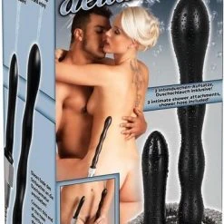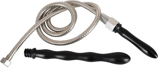 Deze zilverkleurige doucheslang is uitgerust met 2 verschillende zwarte koppen voor intensief genot. Vanwege de bijgeleverde douchslang, is het gemakkelijk om de anale opzetstukken om te wisselen. Beide varianten hebben een uniek vorm voor zowel de beginnende als de gevorderde gebruiker. Een soepele en stimulerende penetratie gegarandeerd!