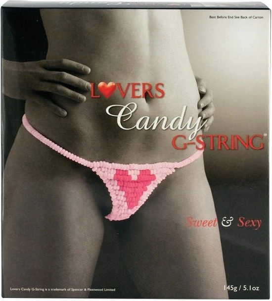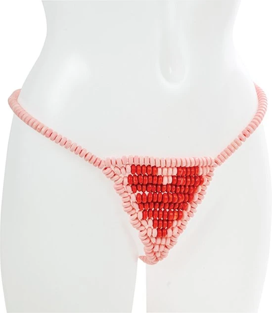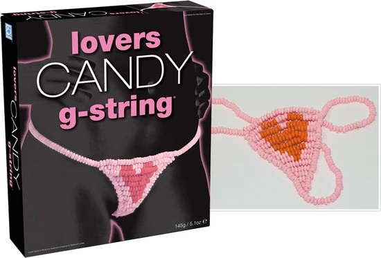 De mooiste billen verdienen een lekkere string! De Candy string is volledig gemaakt van snoepjes die je partner stuk voor stuk kan opeten. De string is voorzien van elastische bandjes voor een perfecte pasvorm. Geef de string cadeau of verras je partner.